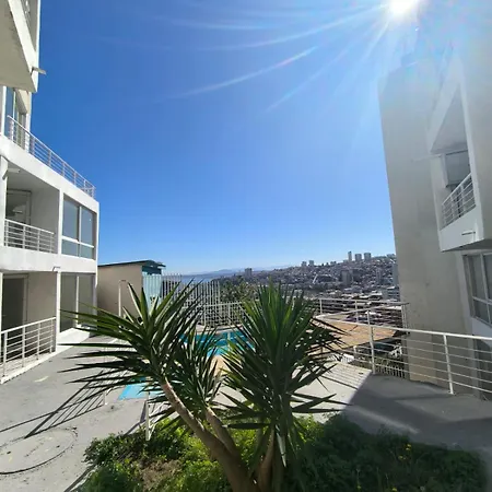 Vista Panoramica A La Bahia Depto 2P公寓俯瞰着大海,仅需20分钟即可到达瓦尔帕莱索的赛巴斯提雅那。 瓦尔帕莱索Vista Panoramica A La Bahia Depto 2P公寓设有私人游泳池。